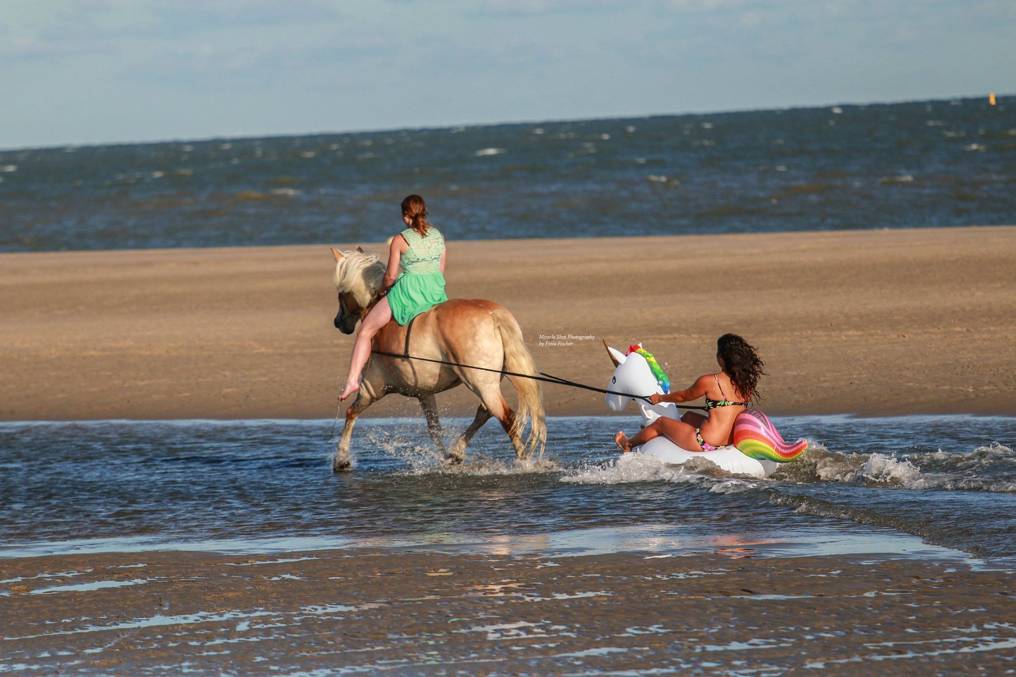 Irgendwann habe ich dann aber im Internet ein Video gesehen, wo sich jemand mit einem Flamingo durchs Wasser ziehen lässt. Mir war klar: Wir machen das einfach mit einem Einhorn!